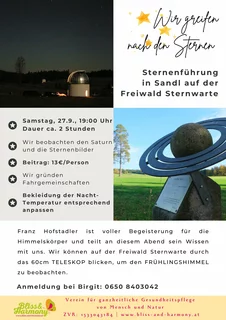 27.09.: Sternenführung in Sandl auf der Freiwaldsternwarte um 19 Uhr |