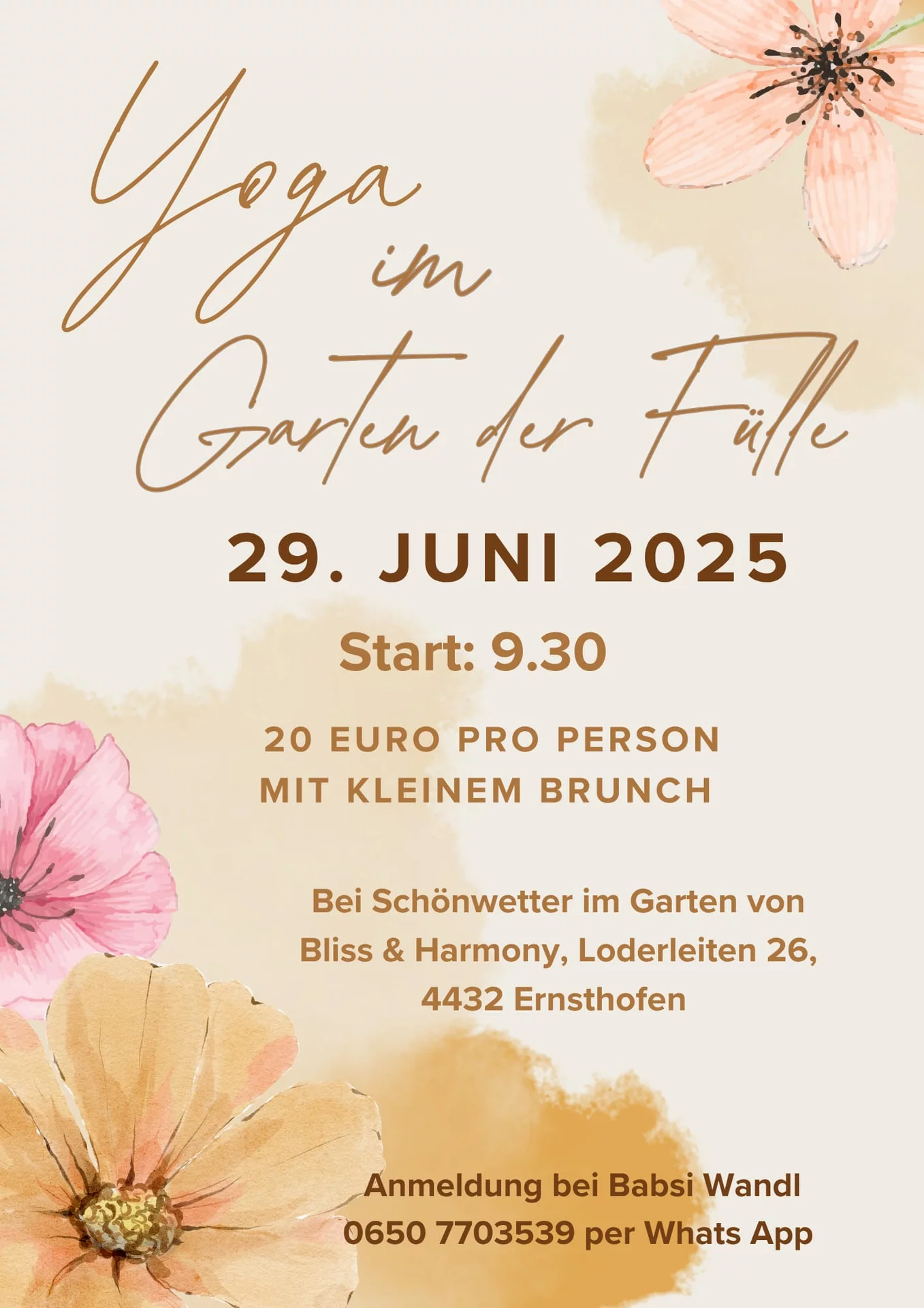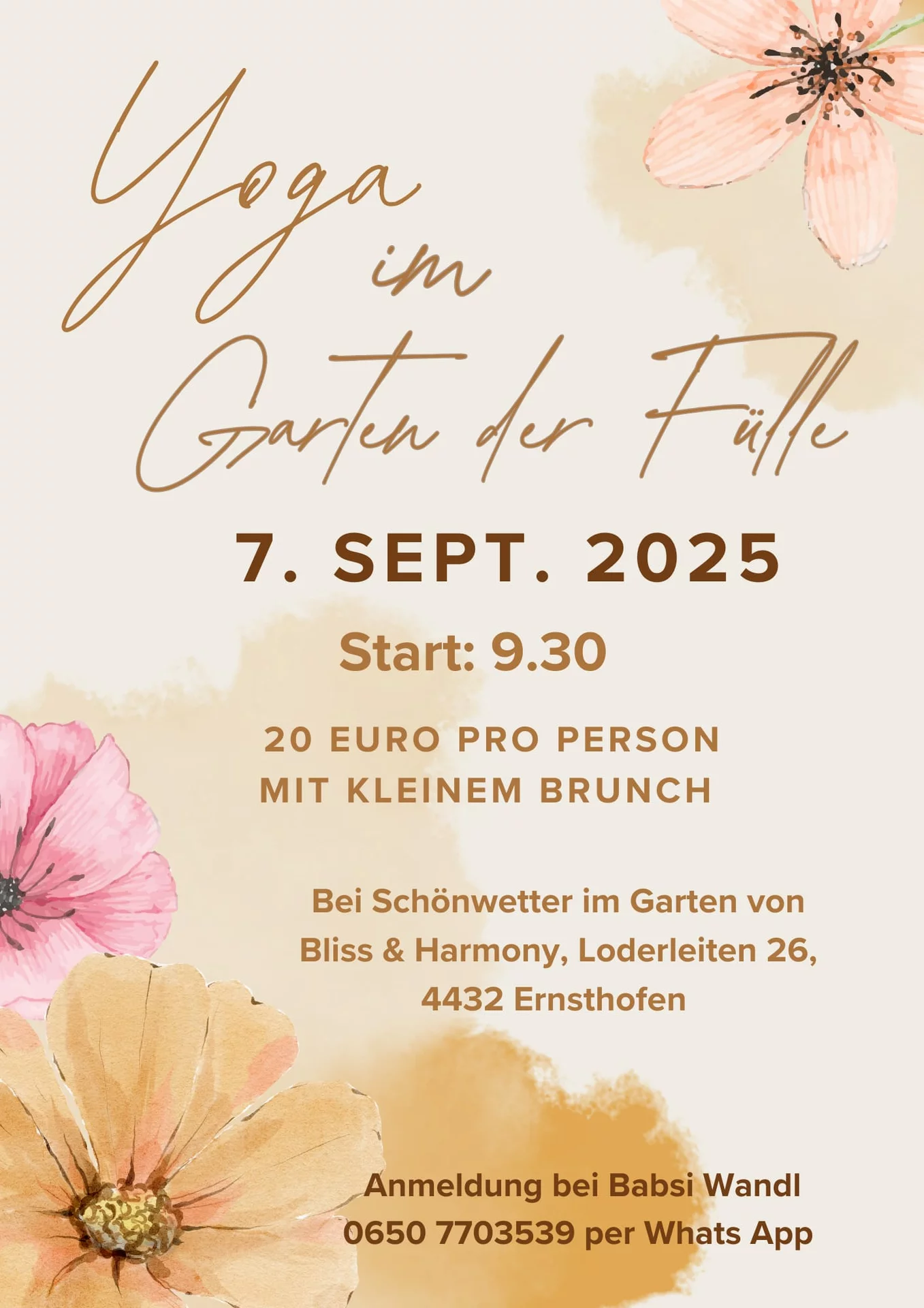 07.09.: YOGA im Garten mit Babsi um 09:30 Uhr |